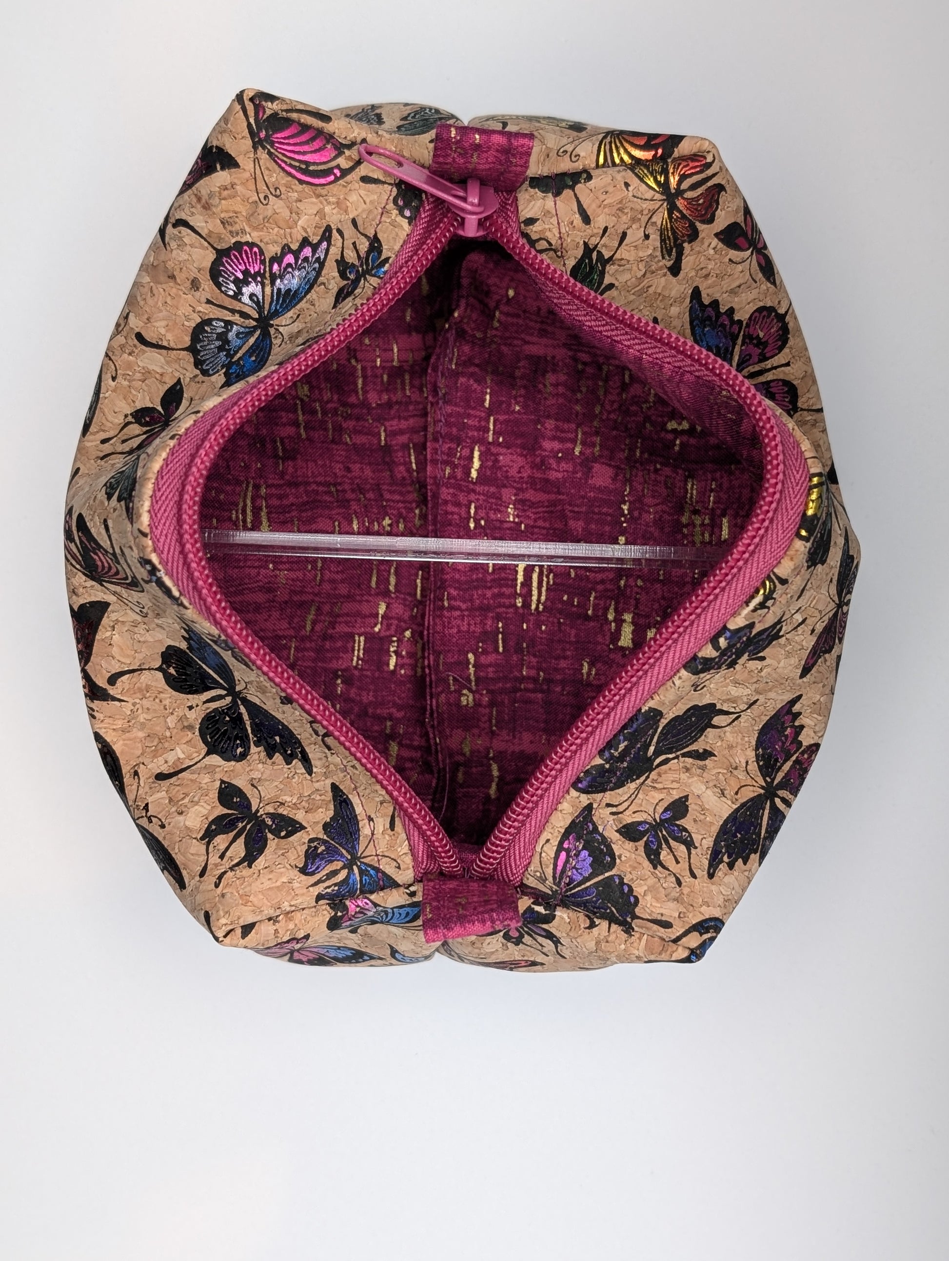 These boxy bags are very similar to the quilted cotton bags, but are made from a cork fabric on the exterior. They also make them more durable.